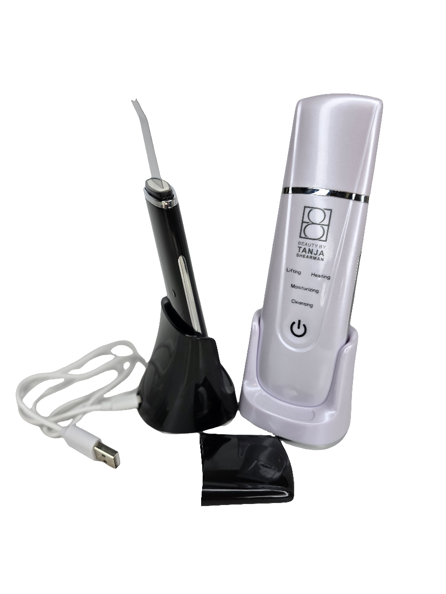 The Beauty by Tanja Shearman Electric Face Scrub is a skincare device that provides deep cleansing and revitalization of the skin. The device uses electromagnetic waves to exfoliate and rejuvenate the skin.