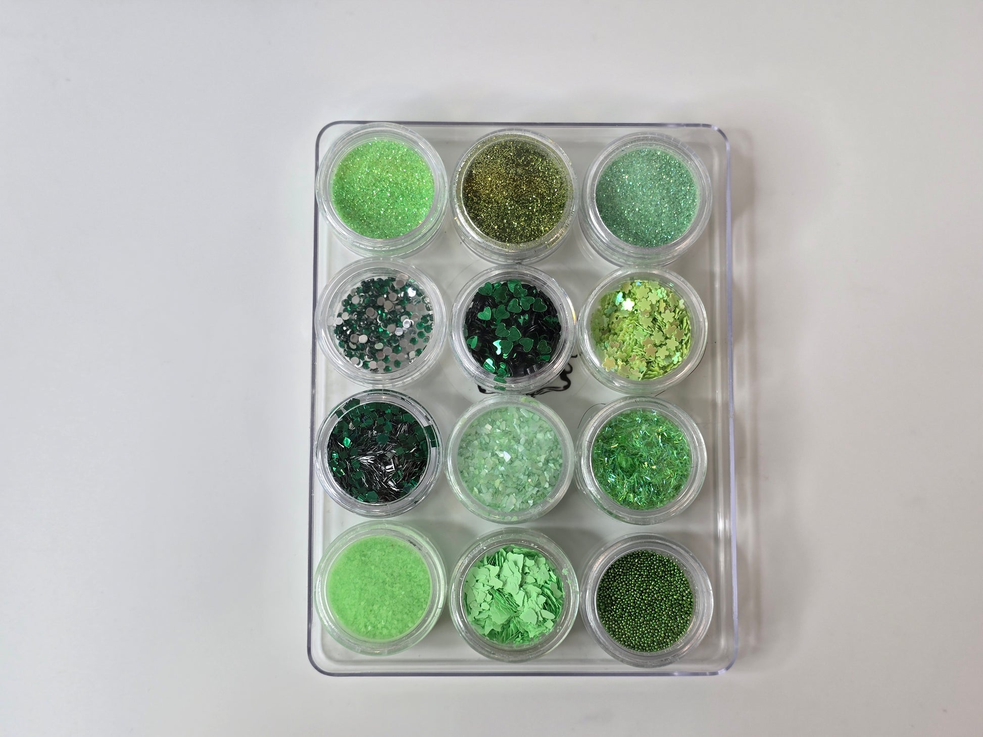 Nail-art kit met met diverse strassteentjes gliterpoeder en decoratie