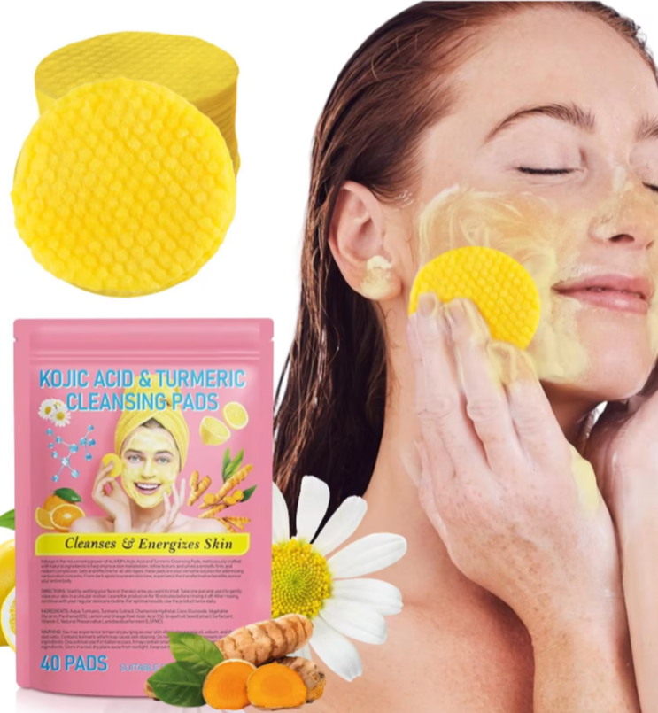Kenmerken: Deze reinigingspads met kurkuma bevatten kurkuma-extract dat puistjes en het verschijnen van donkere vlekken vermindert. Ze zijn zacht, effectief en geformuleerd voor zelfs de gevoelige huid. Deze zijn een hoofdbestanddeel van uw routine. Zacht en kalmerend: Deze pads zijn zacht voor de huid, waardoor ze geschikt zijn voor alle huidtypen, inclusief de gevoelige huid. Ze helpen om geïrriteerde huid te verzachten en kalmeren. Huidverhelderende formules: De combinatie van kurkuma en kojiczuur helpt om donkere vlekken, hyperpigmentatie en ongelijkmatige huidtinten te verlichten, wat een jeugdiger uiterlijk bevordert. Krachtige exfoliatie: Deze reinigingspads zijn doordrenkt met kurkuma en kojiczuur, wat zorgt voor een krachtige exfoliatie om dode huidcellen te verwijderen en een helderdere teint te onthullen. Geschikt voor alle huidtypen: Zacht en niet-irriterend. Advies om om de dag te gebruiken. Maar kan elke dag tot twee keer per dag voorzichtig worden gebruikt. voor zowel een vette als een droge huid
