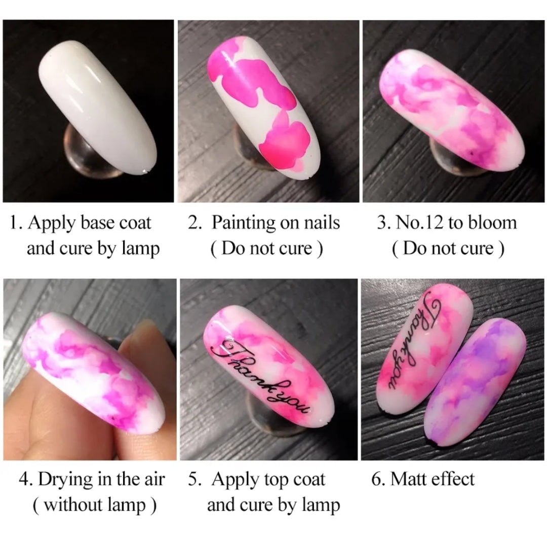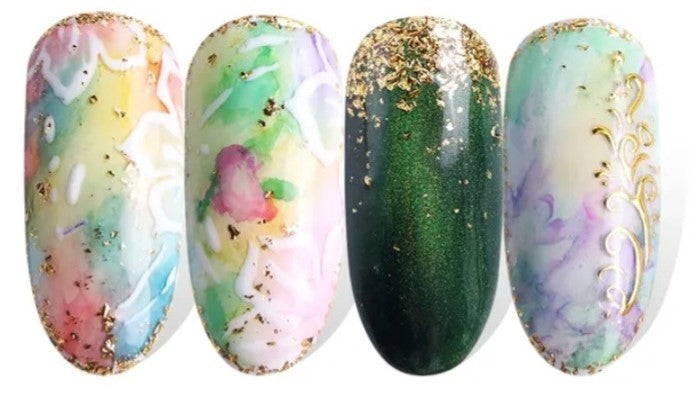 Met Empire Colordrop creëer je eindeloze Nailart mogelijkheden op je nagels, van bloemen tot marmer-effecten en kleurverlopen. De dunne, vloeibare formule is luchtdrogend en sterk gepigmenteerd. Breng de tint direct aan op de plaklaag, trek lijnen of zet punten die zich moeiteloos over de nagel verspreiden en aan de lucht drogen. Voeg andere nailart elementen zoals steentjes toe en verzegel voor een prachtige look.