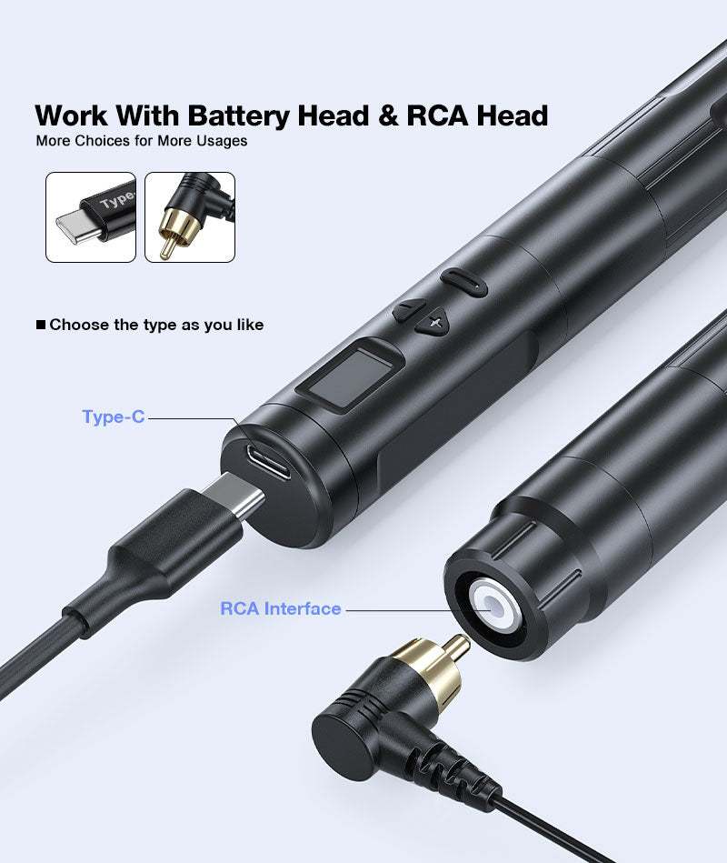 Met twee batterijkoppen en 1 RCA-kop voor 1 handstuk van de machine, kan alleen of met een voeding werken