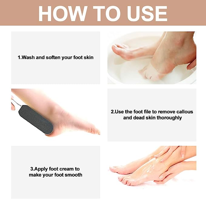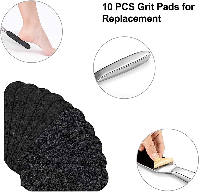 Ontdek de voetrvijl voor charmante voeten zonder ongemak. Veilig dode huid verwijderen, zachte voeten, genot. Kwaliteit roestvrij staal, duurzaam. Dubbelzijdig design, grof voor dode huid, fijn voor gladheid. Ergonomisch, comfortabel handvat. Zowel thuis als professioneel. Voor zachte, mooie voeten. Dit product bevat: 1 roestvrij staal dubbelzijdig pedicure vijl met 10 stuks vervangende pads.